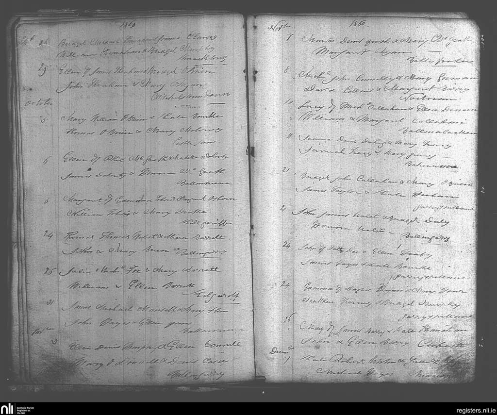 Knocklong and Glenbrohane; County of Limerick; Diocese of Cashel and Emly. Baptisms, Sep. 1860 to Dec. 1860