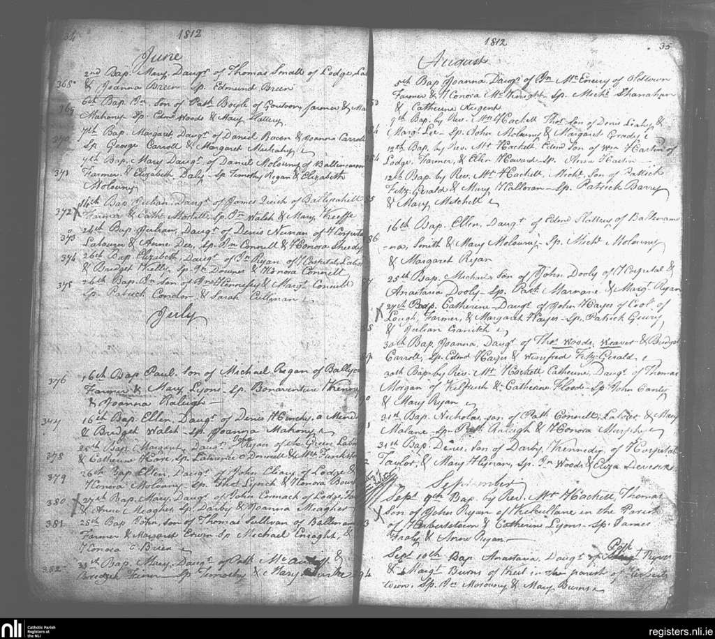 Hospital; County of Limerick; Diocese of Cashel and Emly. Baptisms, June 1812 to Sep. 1812