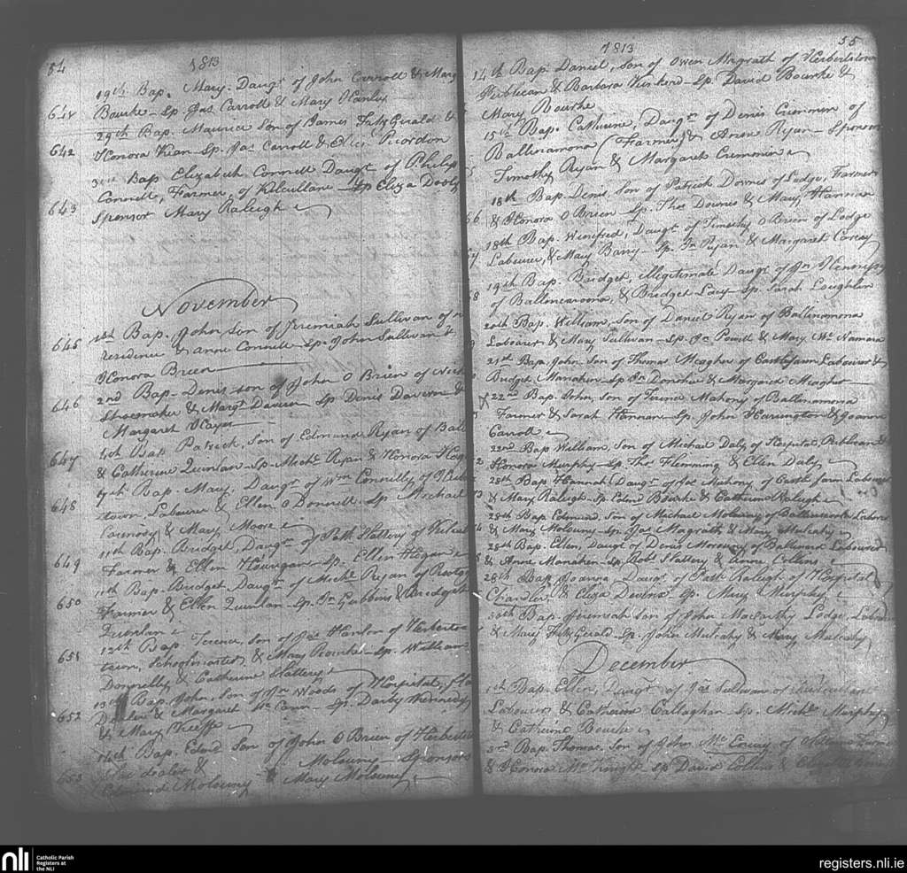 Hospital; County of Limerick; Diocese of Cashel and Emly. Baptisms, Oct. 1813 to Dec. 1813