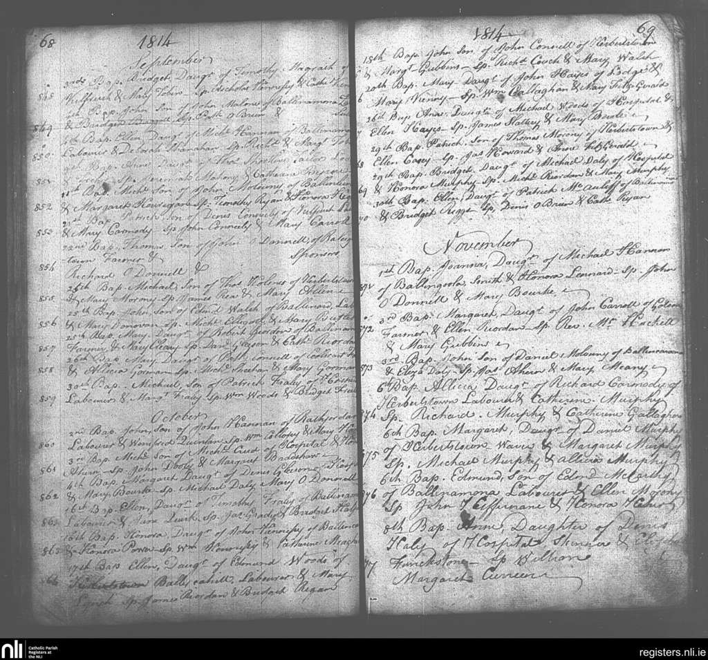 Hospital; County of Limerick; Diocese of Cashel and Emly. Baptisms, Sep. 1814 to Nov. 1814