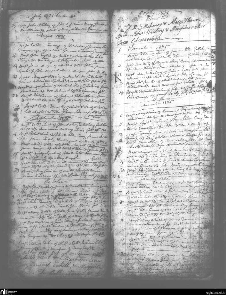 Kilbehenny; County of Limerick; Diocese of Cashel and Emly. Baptisms, July 1825 to Jan. 1826