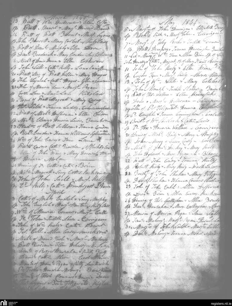 Kilbehenny; County of Limerick; Diocese of Cashel and Emly. Baptisms, Mar. 1844 to May 1844