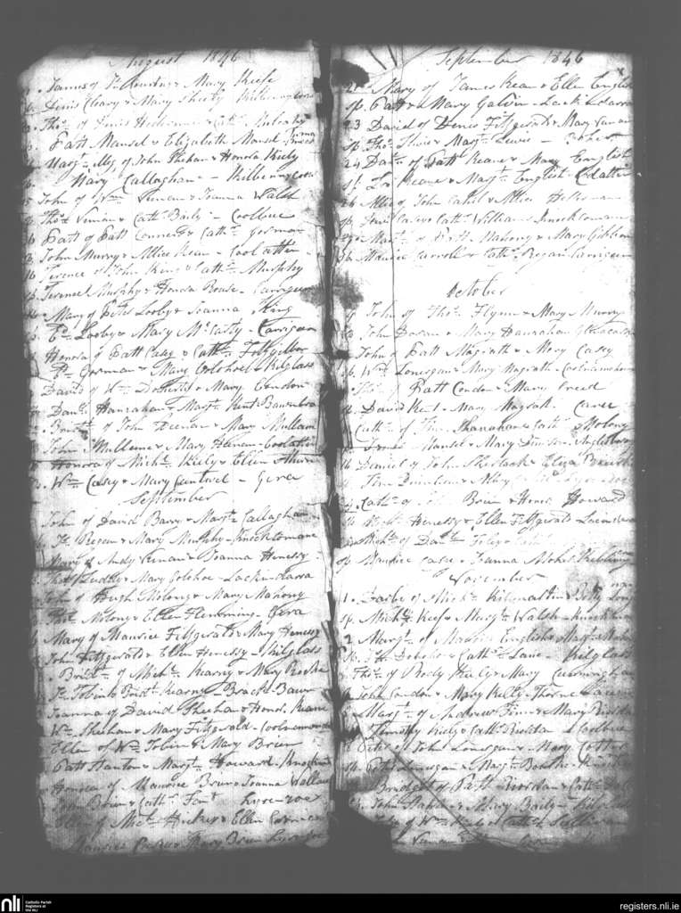 Kilbehenny; County of Limerick; Diocese of Cashel and Emly. Baptisms, Aug. 1846 to Nov. 1846