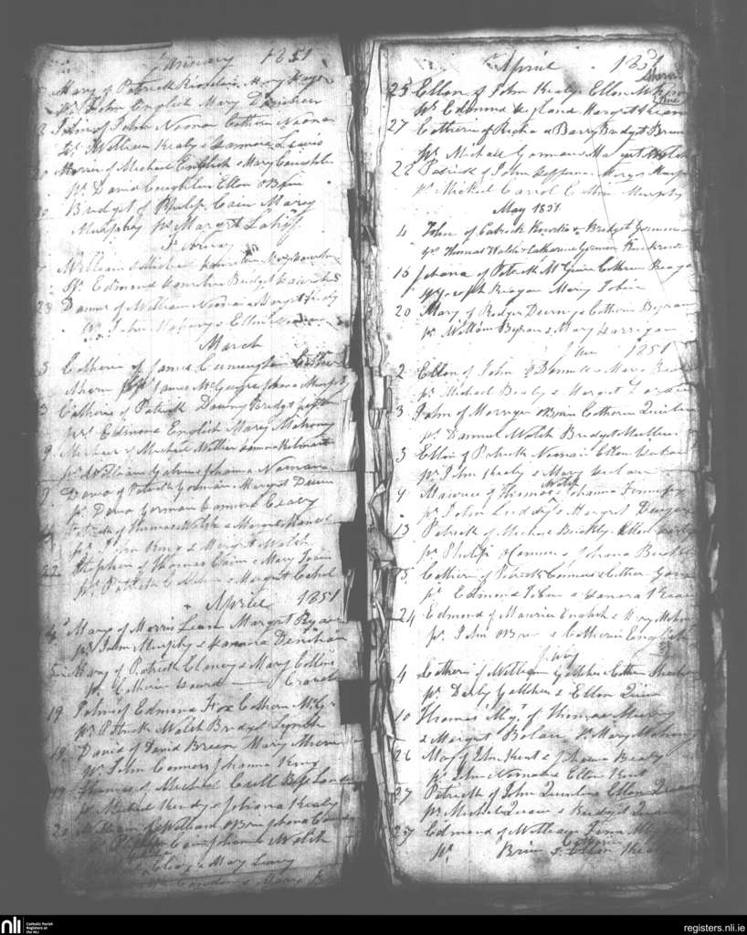 Kilbehenny; County of Limerick; Diocese of Cashel and Emly. Baptisms, Jan. 1851 to July 1851