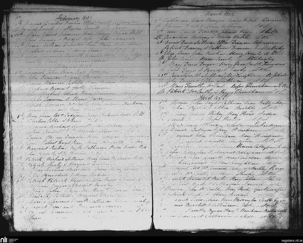 Castlehaven; County of Cork; Diocese of Cork and Ross. Baptisms, Feb. 1856 to Apr. 1856