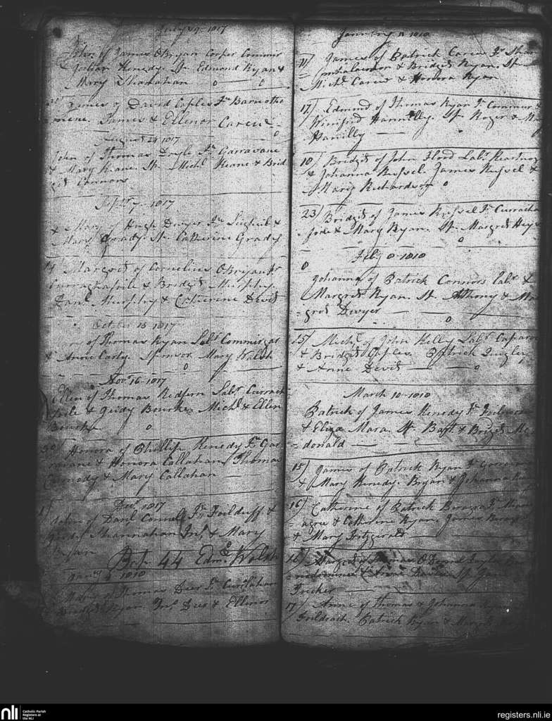 Kilcommon; County of Tipperary; Diocese of Cashel and Emly. Baptisms, July 1817 to Mar. 1818