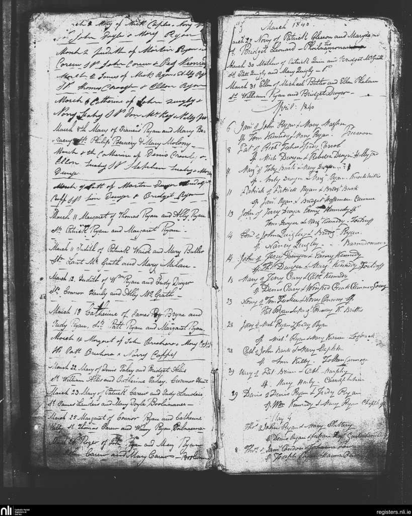 Kilcommon; County of Tipperary; Diocese of Cashel and Emly. Baptisms, Mar. 1840 to May 1840