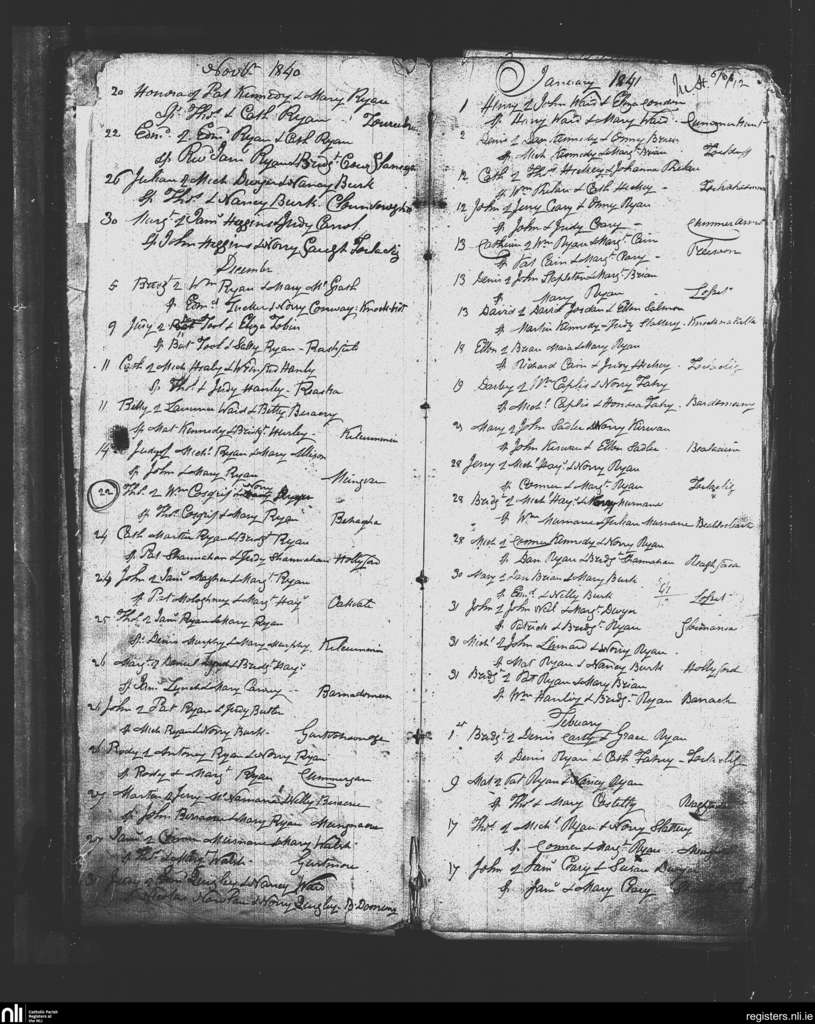 Kilcommon; County of Tipperary; Diocese of Cashel and Emly. Baptisms, Nov. 1840 to Feb. 1841