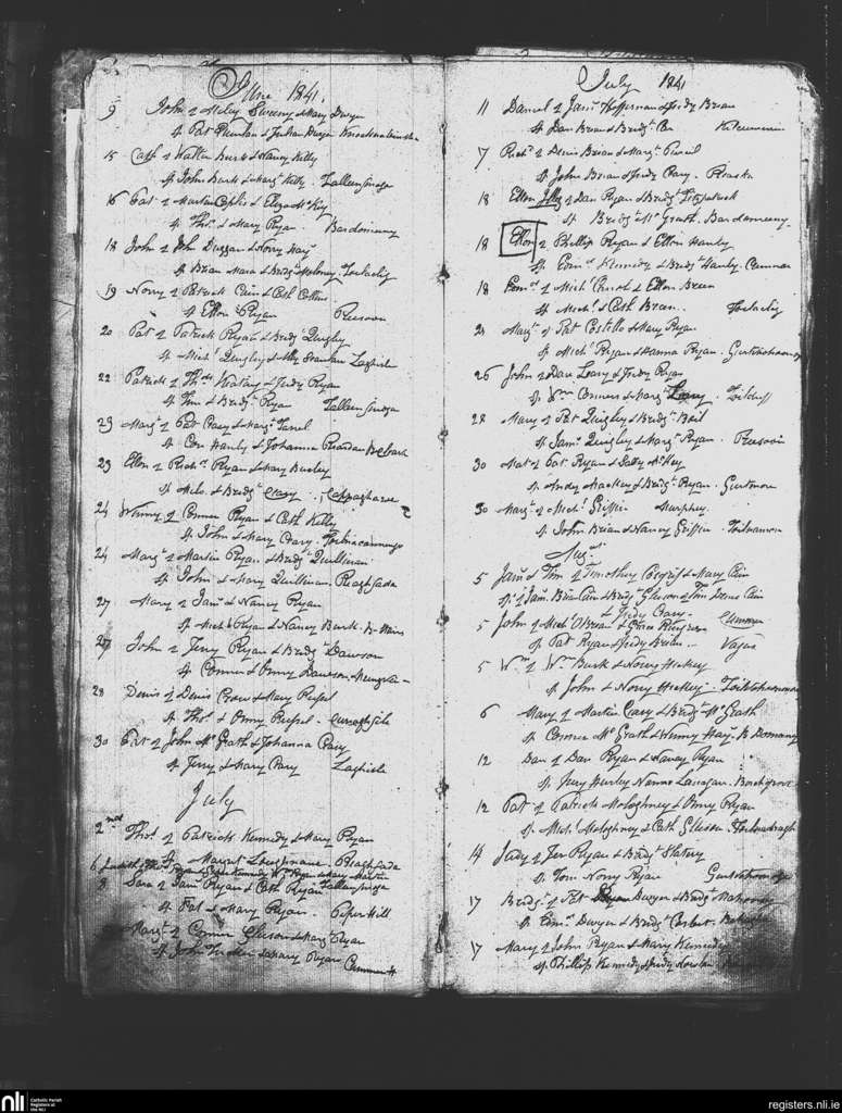 Kilcommon; County of Tipperary; Diocese of Cashel and Emly. Baptisms, June 1841 to Aug. 1841