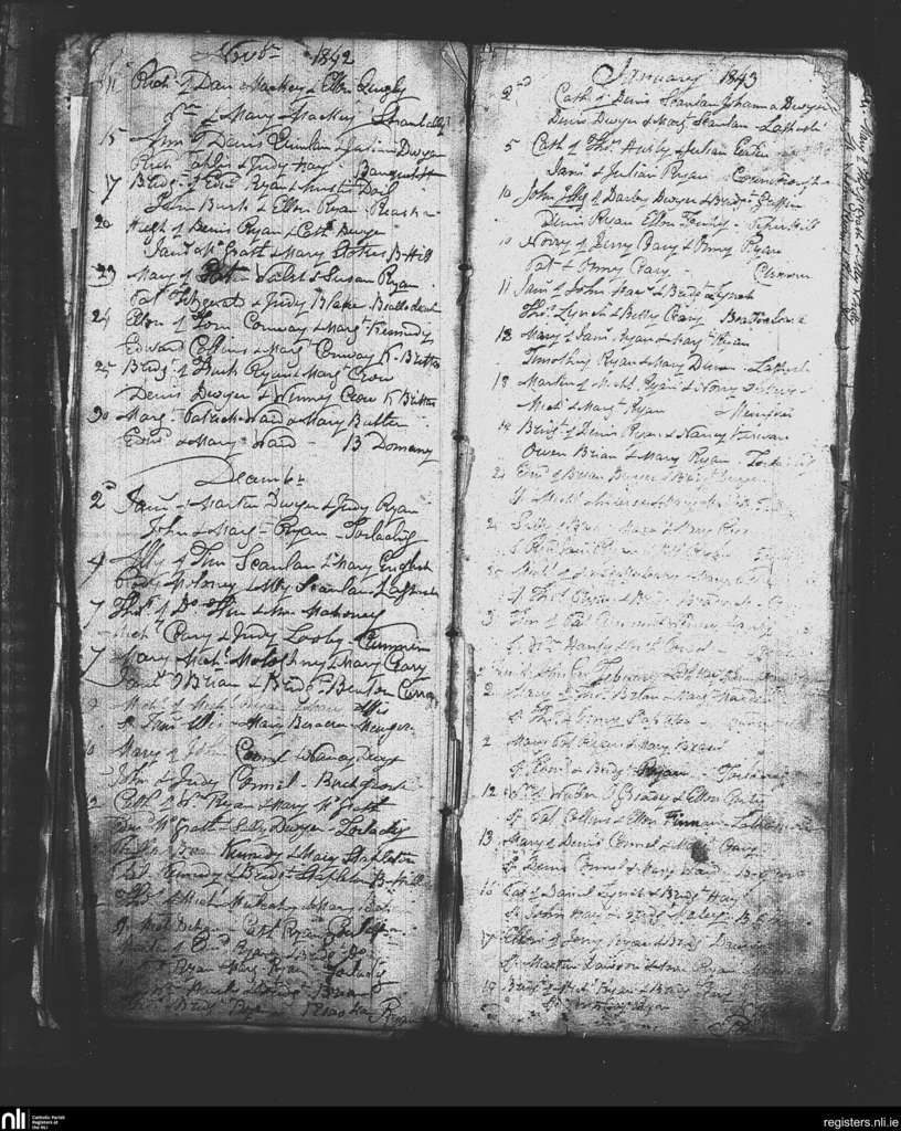 Kilcommon; County of Tipperary; Diocese of Cashel and Emly. Baptisms, Nov. 1842 to Jan. 1843