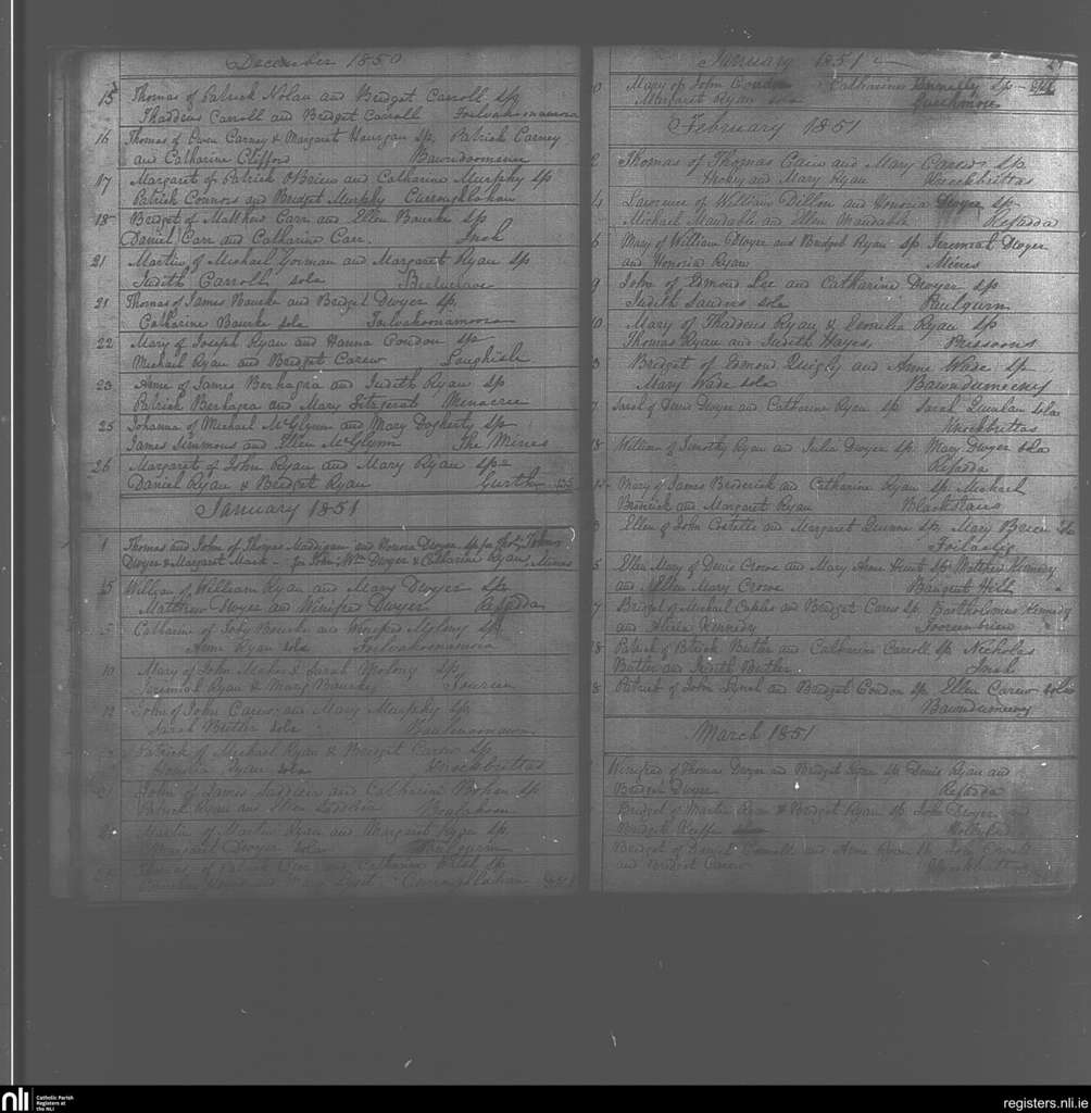 Kilcommon; County of Tipperary; Diocese of Cashel and Emly. Baptisms, Dec. 1850 to Mar. 1851