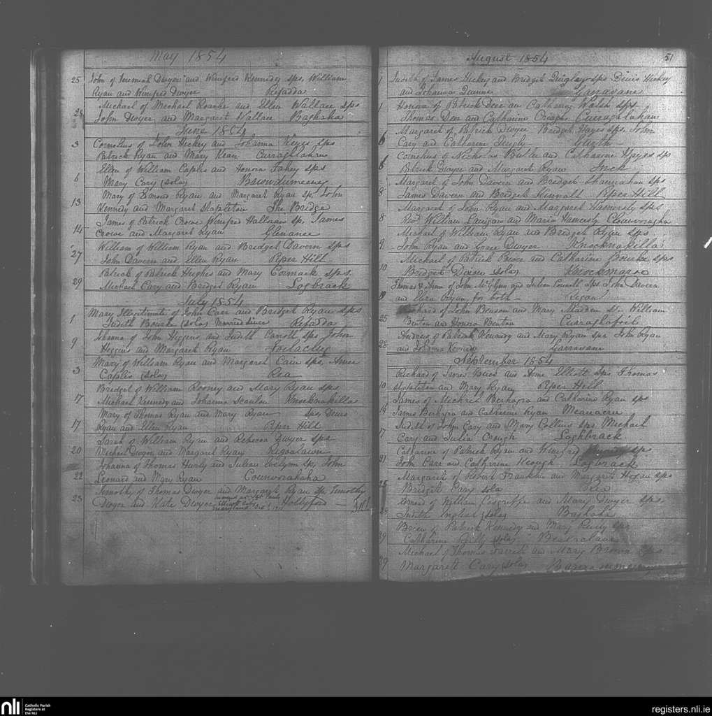 Kilcommon; County of Tipperary; Diocese of Cashel and Emly. Baptisms, May 1854 to Sep. 1854
