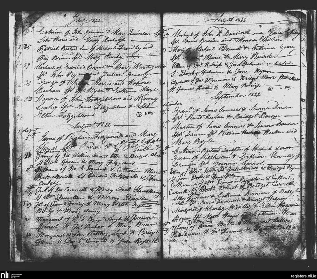 Knockany and Patrickswell; County of Limerick; Diocese of Cashel and Emly. Baptisms, July 1822 to Oct. 1822