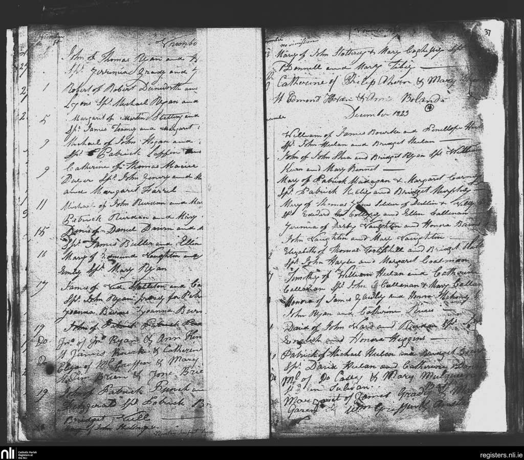 Knockany and Patrickswell; County of Limerick; Diocese of Cashel and Emly. Baptisms, Nov. 1823 to Dec. 1823