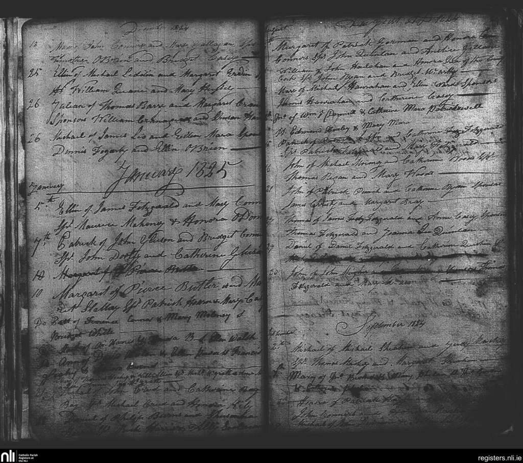 Knockany and Patrickswell; County of Limerick; Diocese of Cashel and Emly. Baptisms, Aug. 1824 to Jan. 1825