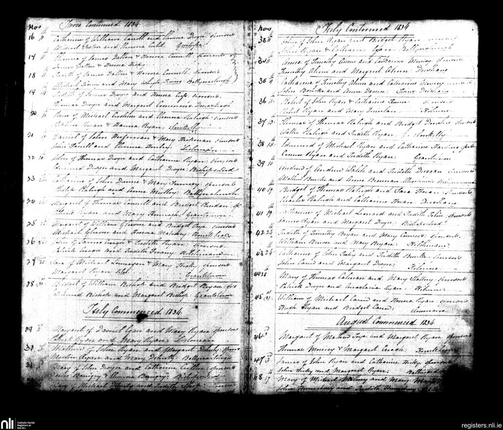 Knockavilla; County of Tipperary; Diocese of Cashel and Emly. Baptisms, June 1834 to Aug. 1834