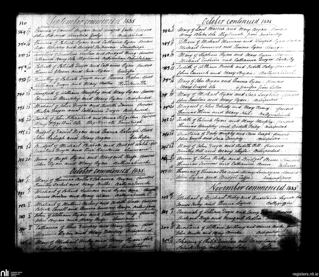 Knockavilla; County of Tipperary; Diocese of Cashel and Emly. Baptisms, Sep. 1835 to Nov. 1835