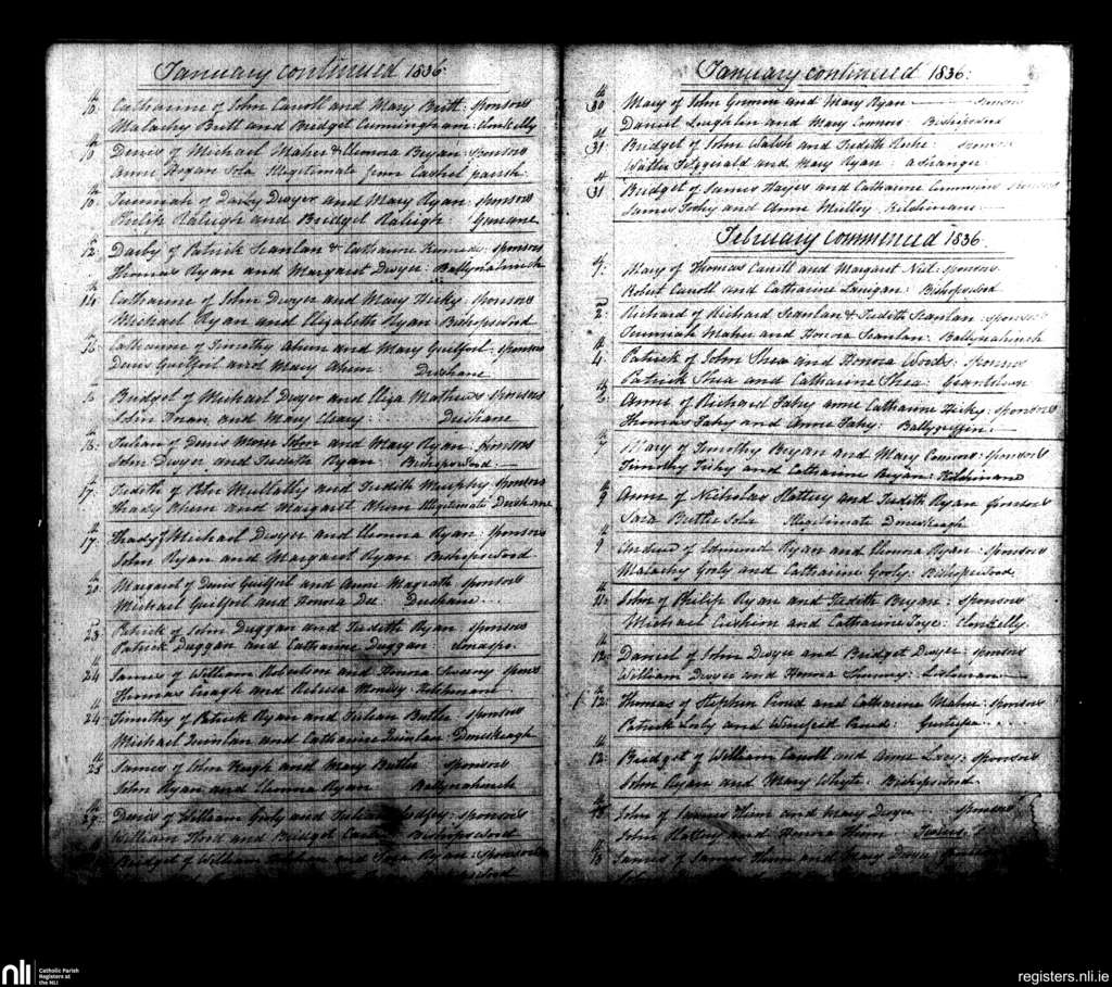 Knockavilla; County of Tipperary; Diocese of Cashel and Emly. Baptisms, Jan. 1836 to Feb. 1836