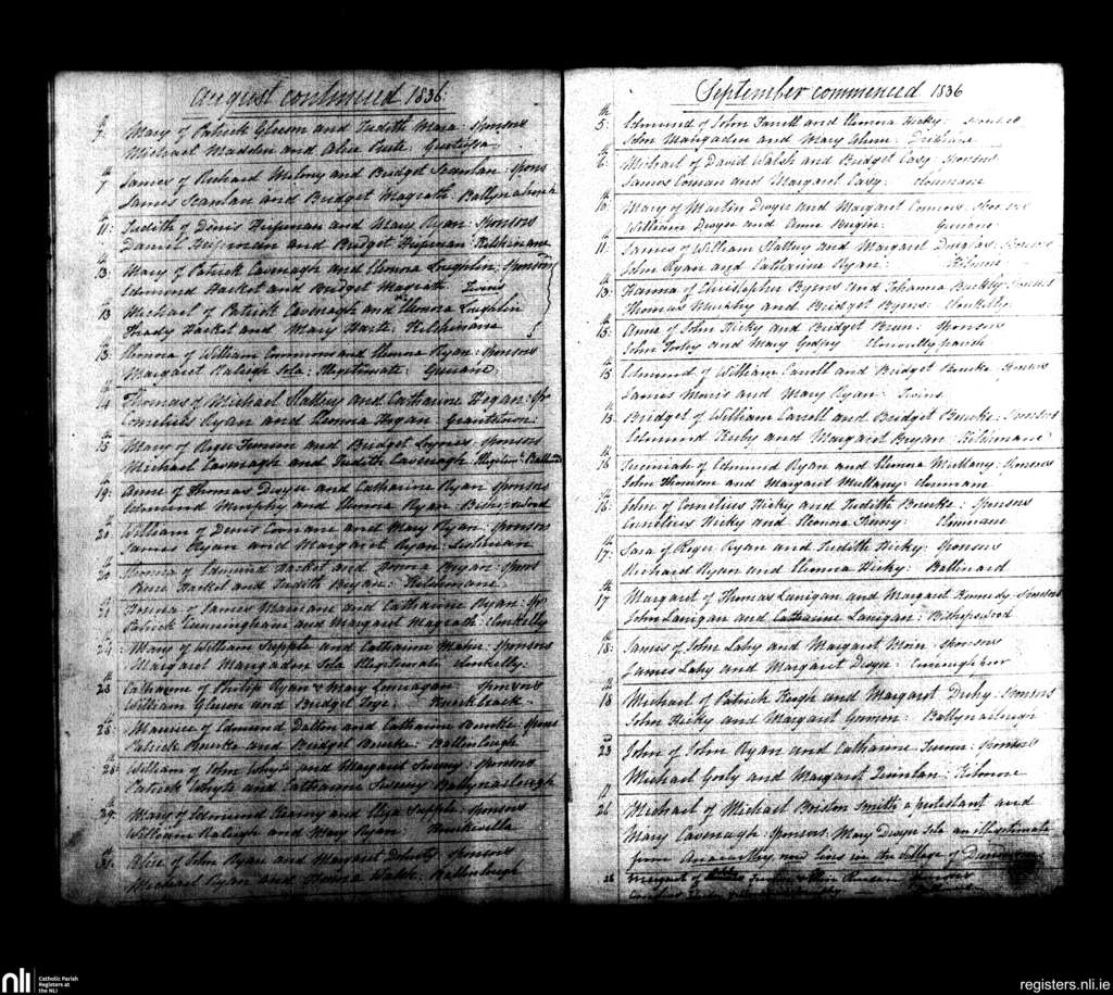 Knockavilla; County of Tipperary; Diocese of Cashel and Emly. Baptisms, Aug. 1836 to Sep. 1836