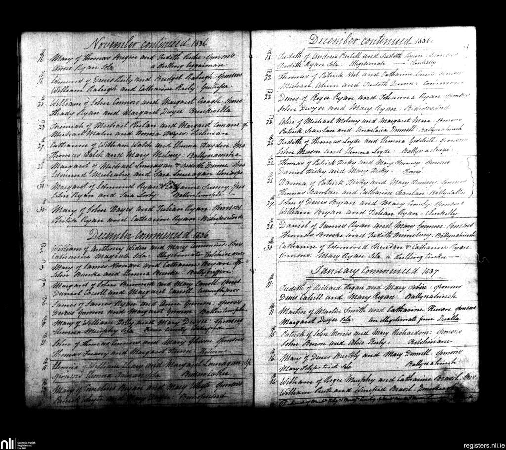 Knockavilla; County of Tipperary; Diocese of Cashel and Emly. Baptisms, Nov. 1836 to Jan. 1837