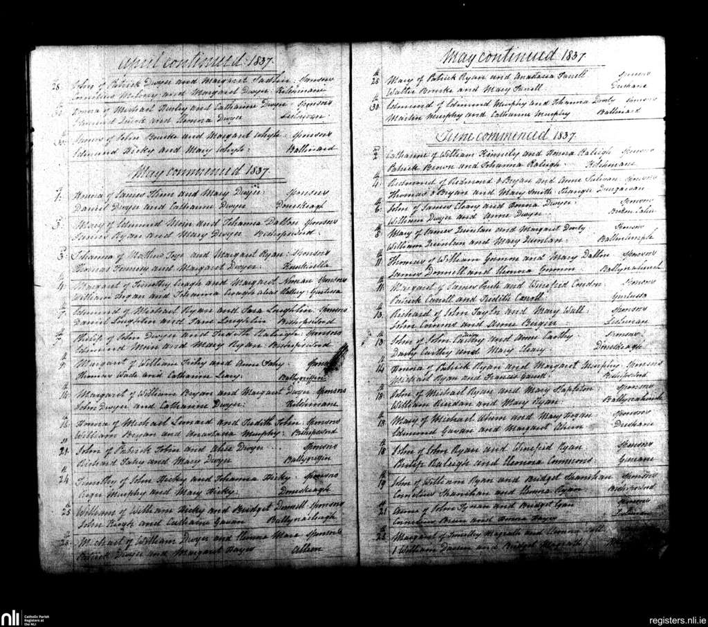 Knockavilla; County of Tipperary; Diocese of Cashel and Emly. Baptisms, Apr. 1837 to June 1837