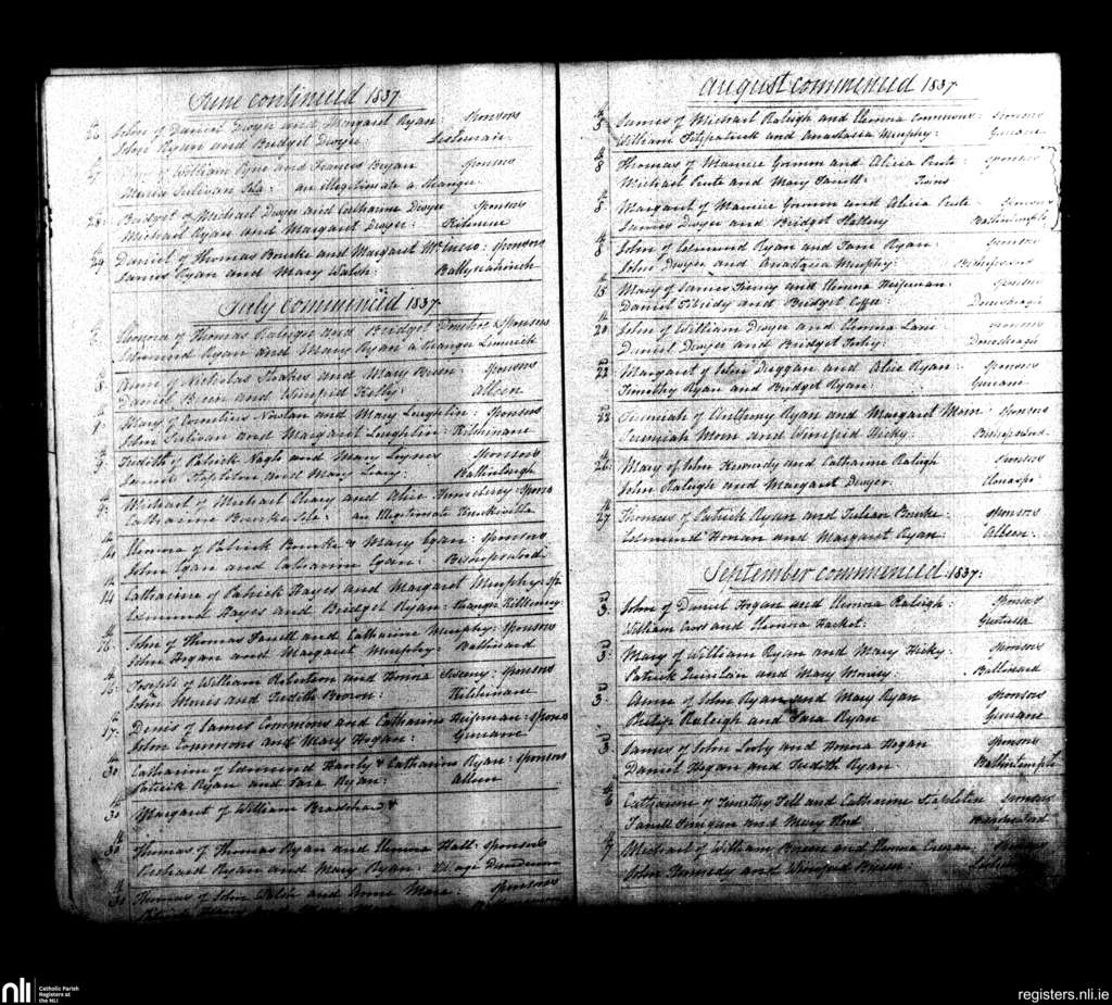 Knockavilla; County of Tipperary; Diocese of Cashel and Emly. Baptisms, June 1837 to Sep. 1837