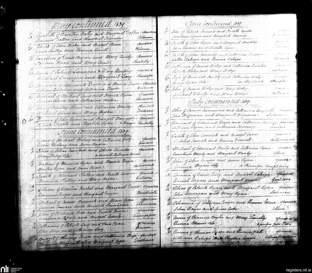 Knockavilla; County of Tipperary; Diocese of Cashel and Emly. Baptisms, May 1839 to July 1839