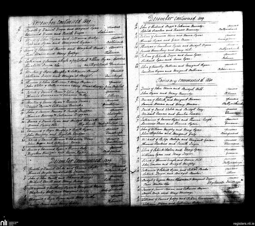Knockavilla; County of Tipperary; Diocese of Cashel and Emly. Baptisms, Nov. 1839 to Jan. 1840