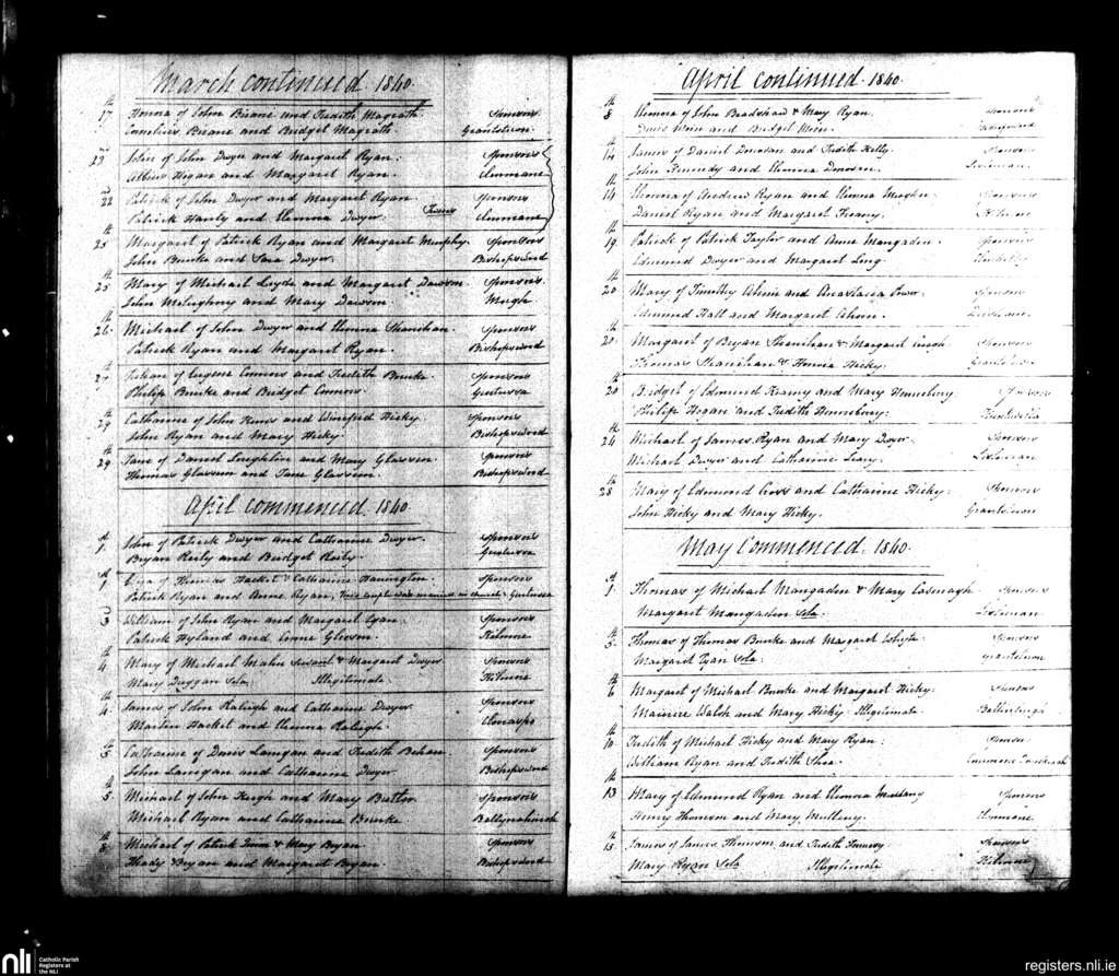 Knockavilla; County of Tipperary; Diocese of Cashel and Emly. Baptisms, Mar. 1840 to May 1840