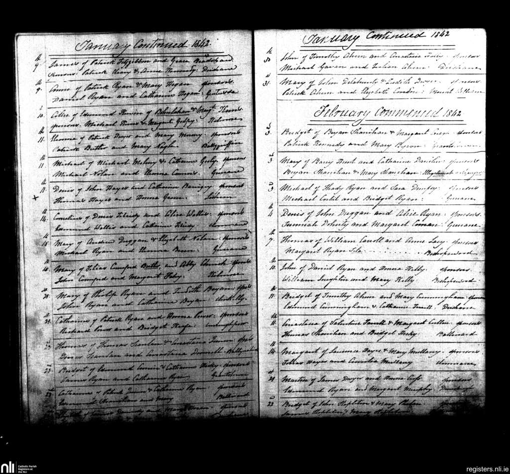 Knockavilla; County of Tipperary; Diocese of Cashel and Emly. Baptisms, Jan. 1842 to Feb. 1842