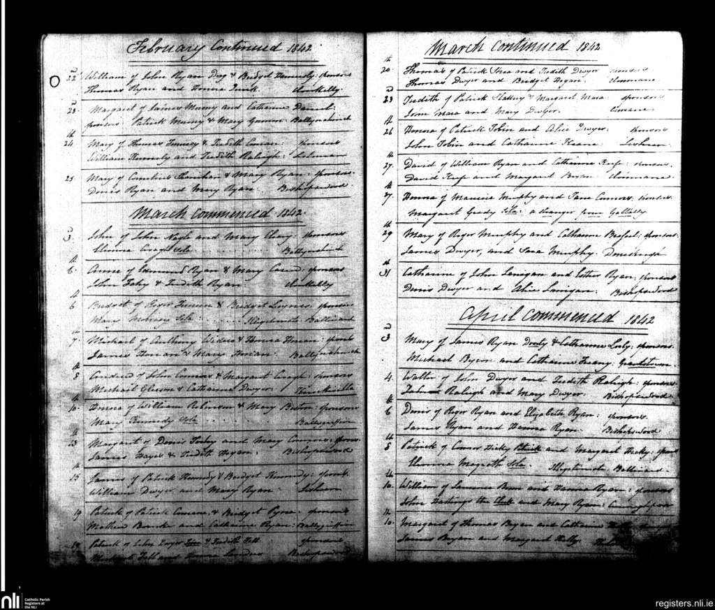 Knockavilla; County of Tipperary; Diocese of Cashel and Emly. Baptisms, Feb. 1842 to Apr. 1842