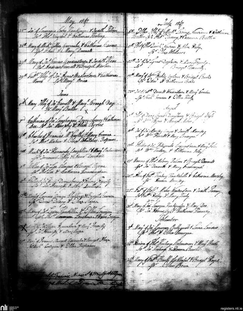 New Inn and Knockgraffon; County of Tipperary; Diocese of Cashel and Emly. Baptisms, May 1847 to Sep. 1847