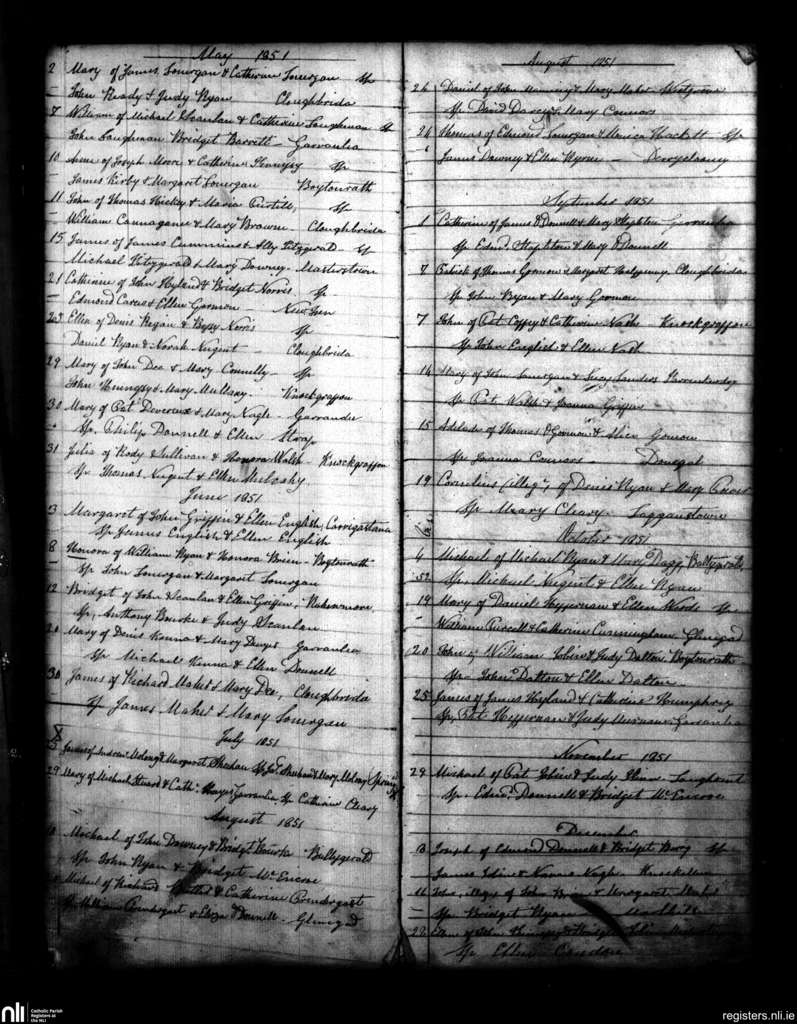 New Inn and Knockgraffon; County of Tipperary; Diocese of Cashel and Emly. Baptisms, May 1851 to Dec. 1851