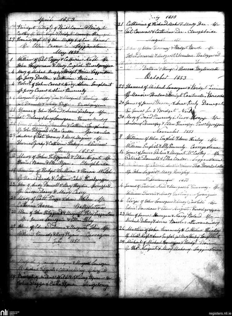 New Inn and Knockgraffon; County of Tipperary; Diocese of Cashel and Emly. Baptisms, Apr. 1853 to Dec. 1853