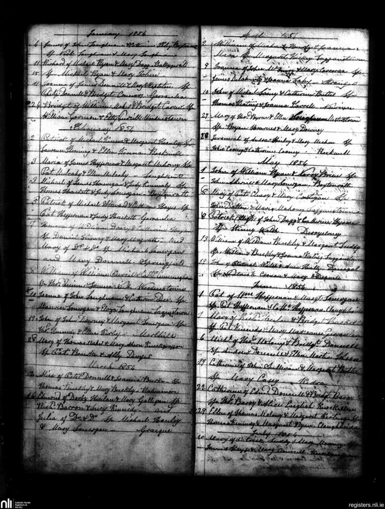 New Inn and Knockgraffon; County of Tipperary; Diocese of Cashel and Emly. Baptisms, Jan. 1854 to July 1854
