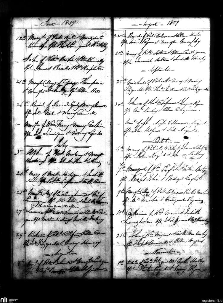 New Inn and Knockgraffon; County of Tipperary; Diocese of Cashel and Emly. Baptisms, June 1859 to Nov. 1859