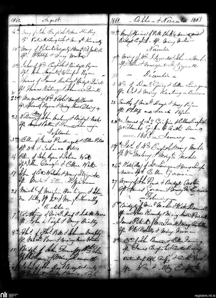 New Inn and Knockgraffon; County of Tipperary; Diocese of Cashel and Emly. Baptisms, Aug. 1862 to Feb. 1863