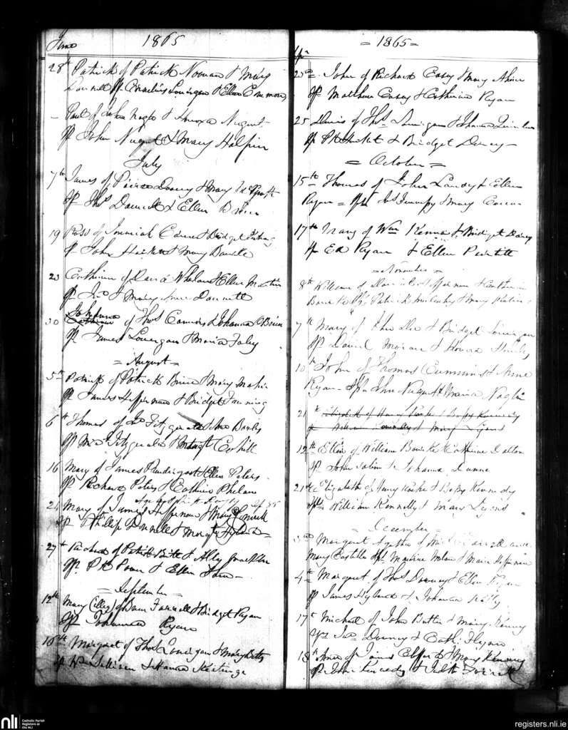 New Inn and Knockgraffon; County of Tipperary; Diocese of Cashel and Emly. Baptisms, June 1865 to Dec. 1865