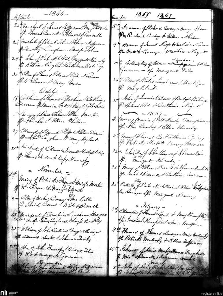 New Inn and Knockgraffon; County of Tipperary; Diocese of Cashel and Emly. Baptisms, Sep. 1866 to Mar. 1867