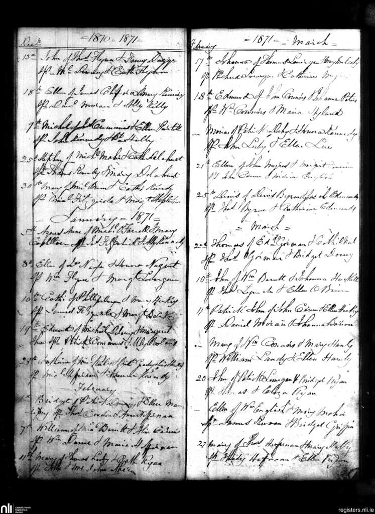 New Inn and Knockgraffon; County of Tipperary; Diocese of Cashel and Emly. Baptisms, Dec. 1870 to Mar. 1871