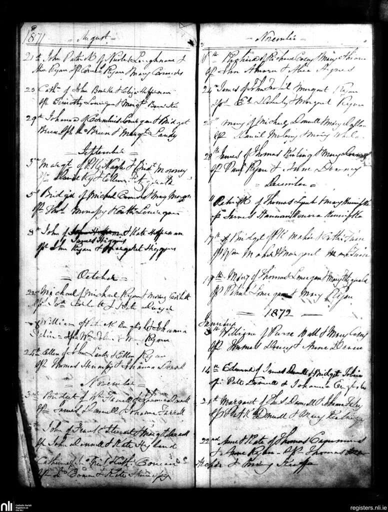 New Inn and Knockgraffon; County of Tipperary; Diocese of Cashel and Emly. Baptisms, Aug. 1871 to Jan. 1872