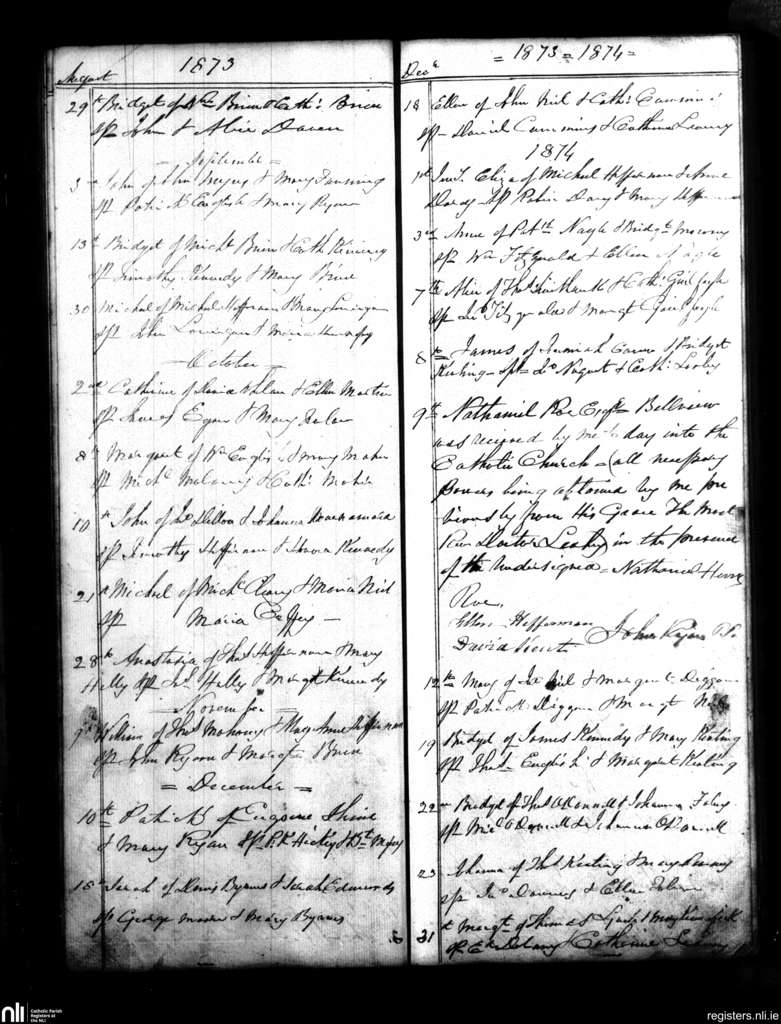 New Inn and Knockgraffon; County of Tipperary; Diocese of Cashel and Emly. Baptisms, Aug. 1873 to Jan. 1874