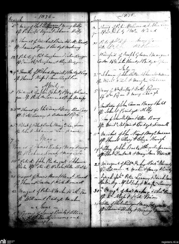 New Inn and Knockgraffon; County of Tipperary; Diocese of Cashel and Emly. Baptisms, Mar. 1876 to July 1876