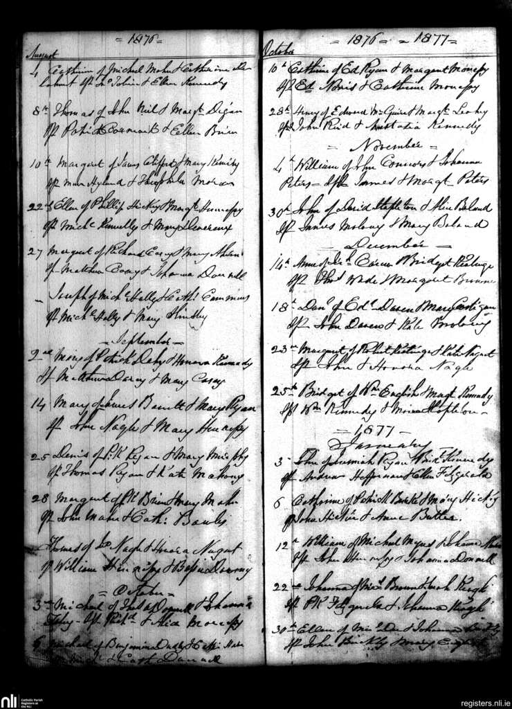 New Inn and Knockgraffon; County of Tipperary; Diocese of Cashel and Emly. Baptisms, Aug. 1876 to Jan. 1877
