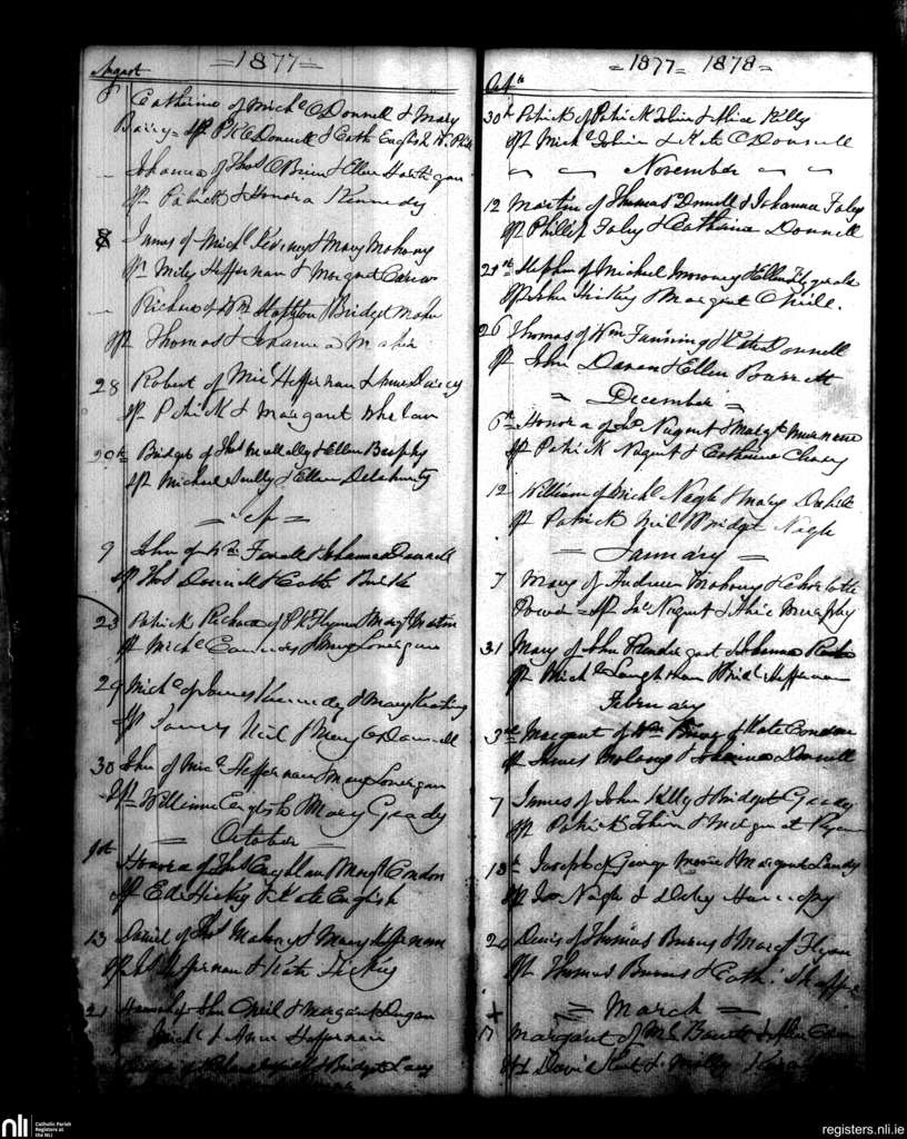 New Inn and Knockgraffon; County of Tipperary; Diocese of Cashel and Emly. Baptisms, Aug. 1877 to Mar. 1878