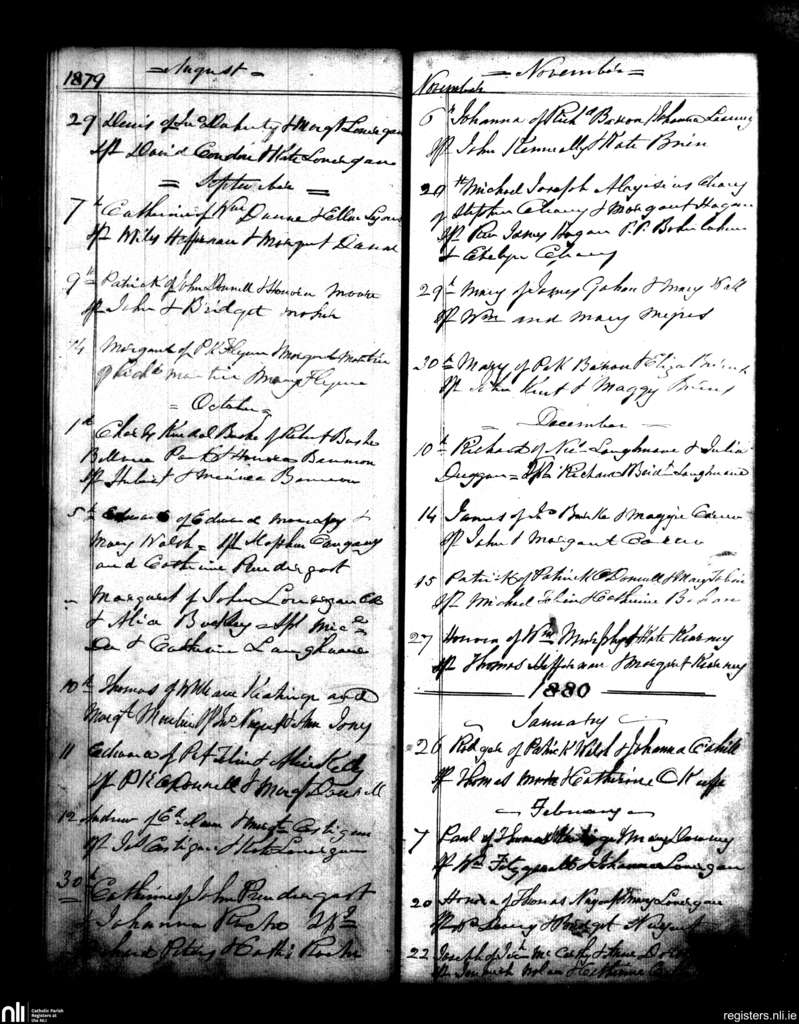 New Inn and Knockgraffon; County of Tipperary; Diocese of Cashel and Emly. Baptisms, Aug. 1879 to Feb. 1880