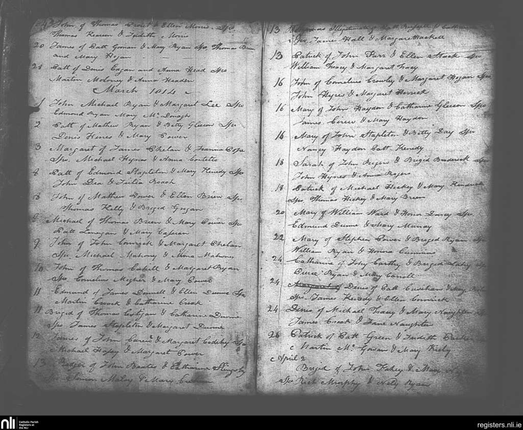Killenaule; County of Tipperary; Diocese of Cashel and Emly. Baptisms, Feb. 1814 to Apr. 1814