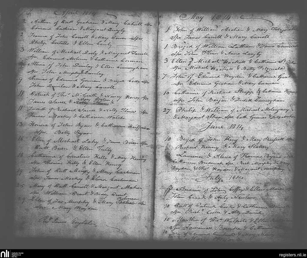 Killenaule; County of Tipperary; Diocese of Cashel and Emly. Baptisms, Apr. 1814 to July 1814