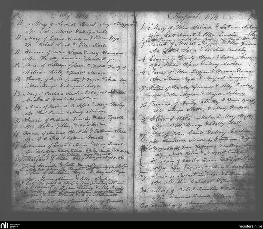 Killenaule; County of Tipperary; Diocese of Cashel and Emly. Baptisms, July 1814 to Aug. 1814