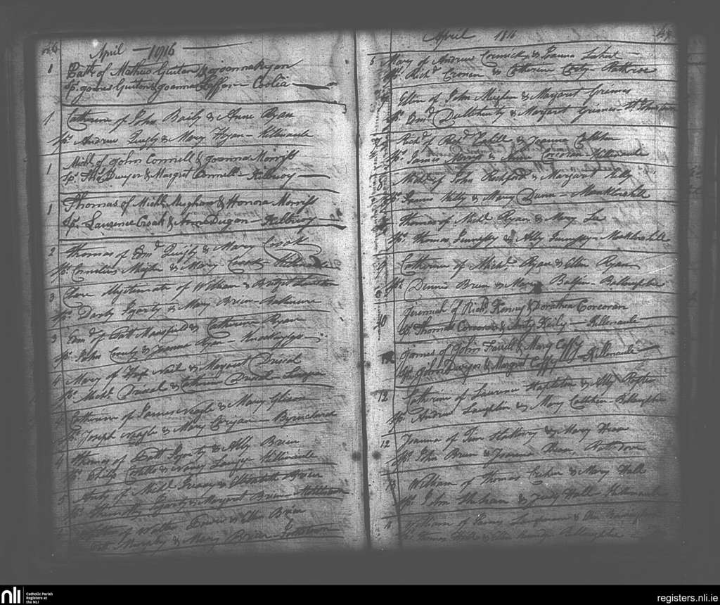 Killenaule; County of Tipperary; Diocese of Cashel and Emly. Baptisms, Apr. 1816